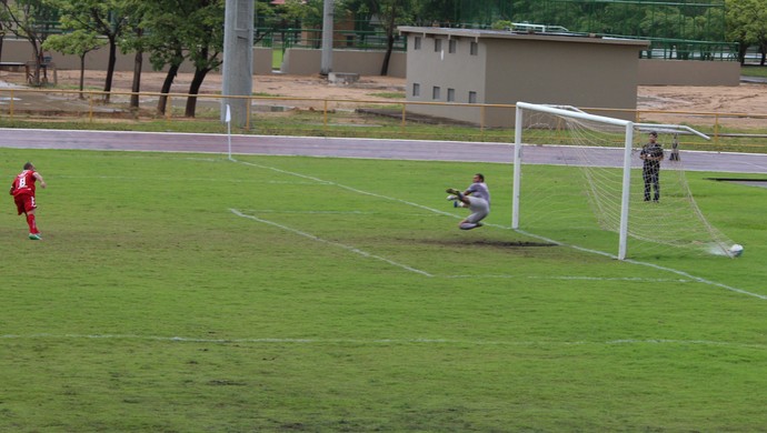 Guilherme, de pênalti, marca o primeiro da goleada de 4 a 0 (Foto: Ivonisio Júnior)